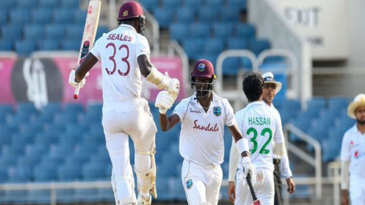 Earlier on Day 4, Pakistan was bundled out for 203 as Jayden Seales took his maiden fifer in Test cricket. Babar Azam top-scored for Pakistan as he played a knock of 55 runs.